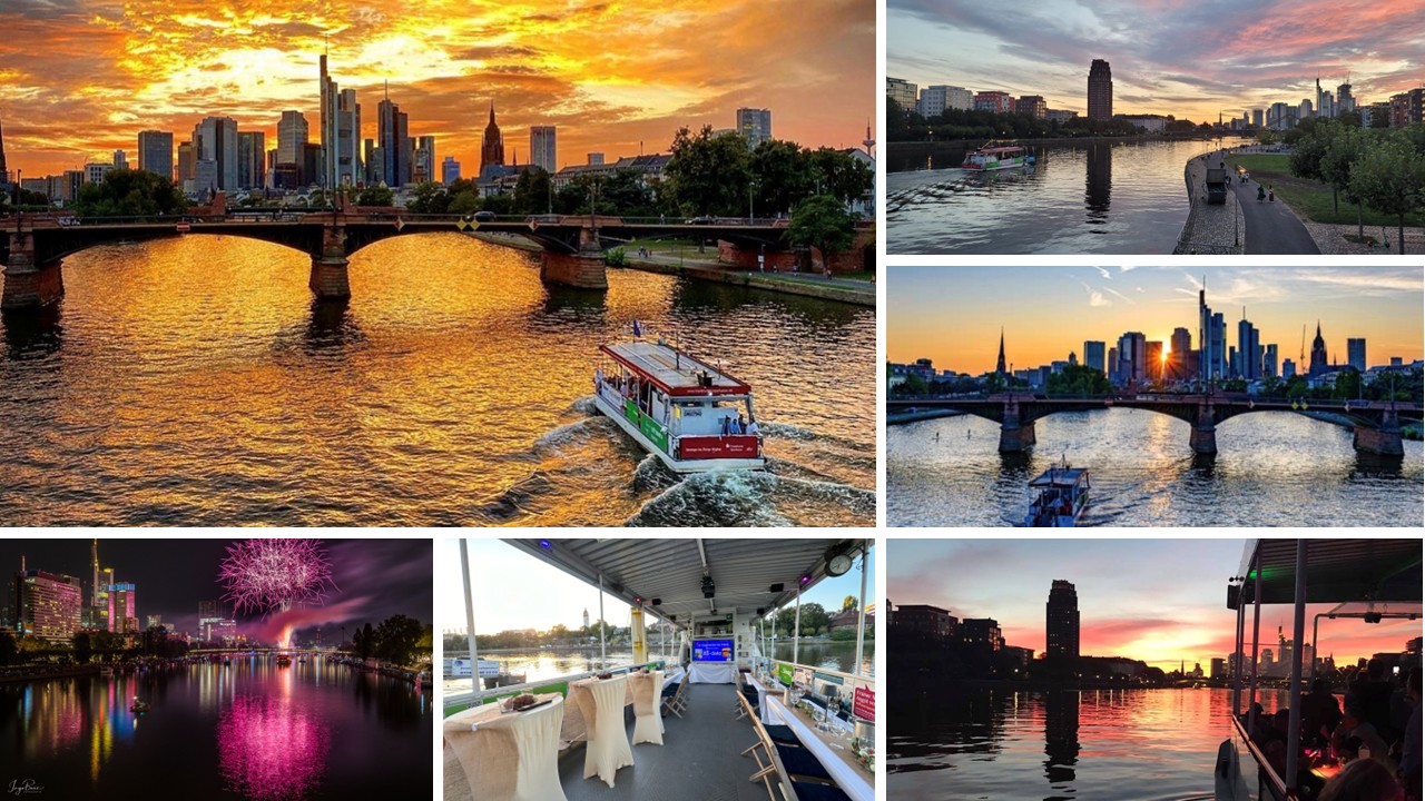 From the water, you will experience Frankfurt from a completely different perspective. After boarding in Höchst or Schwanheim, we leave the west of Frankfurt with a view of #Justinuskirche – Frankfurt’s oldest church. Past the mouth of the Niddam and Bolongaro Palace, the largest civic palace (300 rooms) north of the Alps. While you unpack your picnic basket, you will cycle through forests, meadows and fields towards Griesheim lock. After overcoming a height difference of almost 5m. As the lock gates open to the city, past port facilities, industry, museums and cultural monuments, we approach the high point of our tour… Turning point Osthafen… European Central Bank… Cameras ready and in front of us the fantastic view of the ever-growing Frankfurt skyline…. Departure: 18.30 hrs Schwanheim/Höchst End: approx. 21.30 hrs Schwanheim/Höchst (depending on the lock) Fare € 38.00 – reservation required! You can purchase drinks from us….., you are welcome to bring your own picnic basket…. Reservations: 0178-2880908
